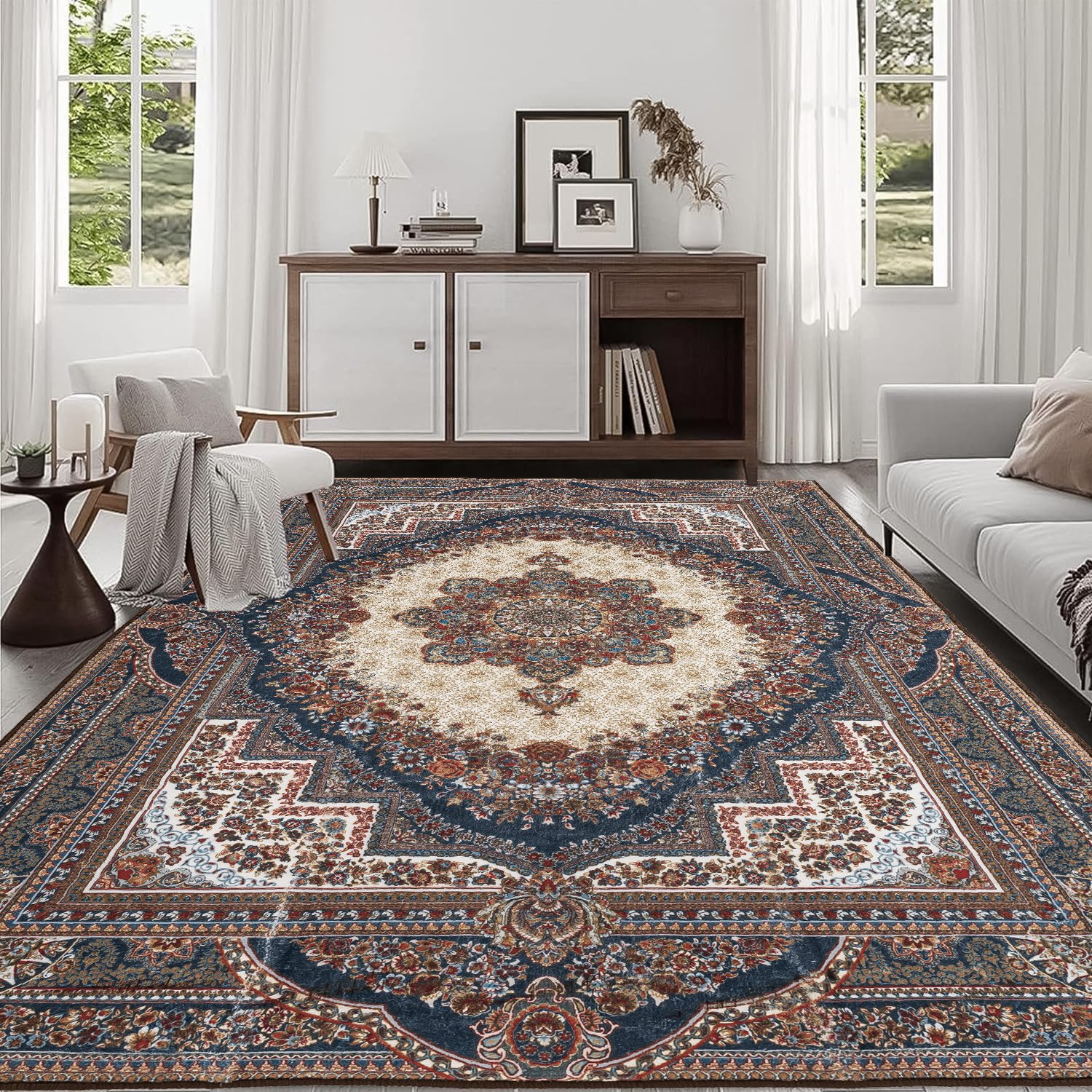 Our washable rugs are made with ultra-fine, ultra-soft faux cashmere fibers. It will not shed fibers or be inhaled. Exquisite vintage design suitable for a variety of decoration styles. Our machine washable area rugs can bring a classic and ideal color to any place.