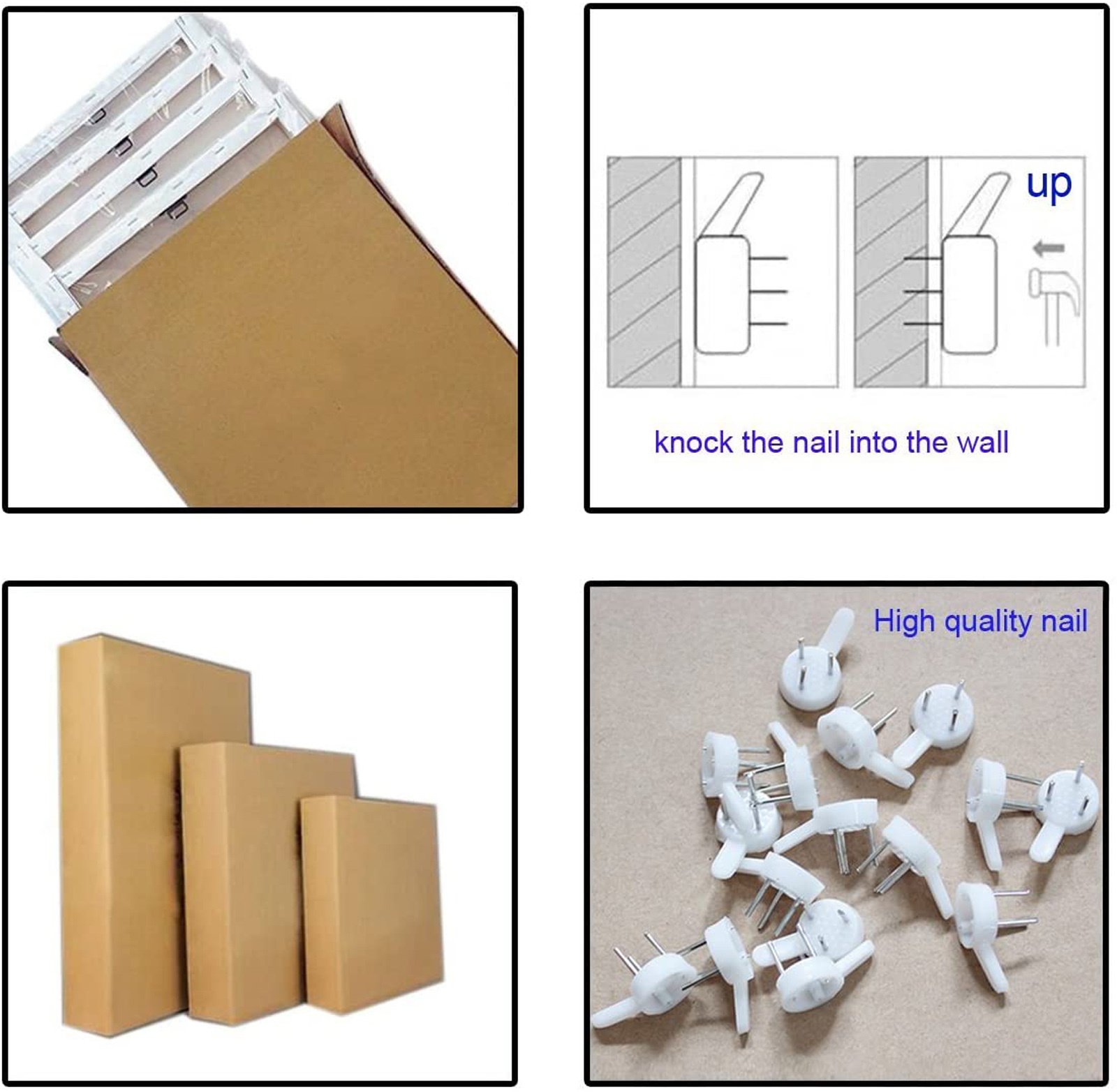 Displayed pictures are only for illustration purposes. They were not taken in real display rooms and do not represent the real size of the canvas panels. They are just as an idea to help you being aware of how this art looks on wall. Measure your wall properly and make sure pick the right size.