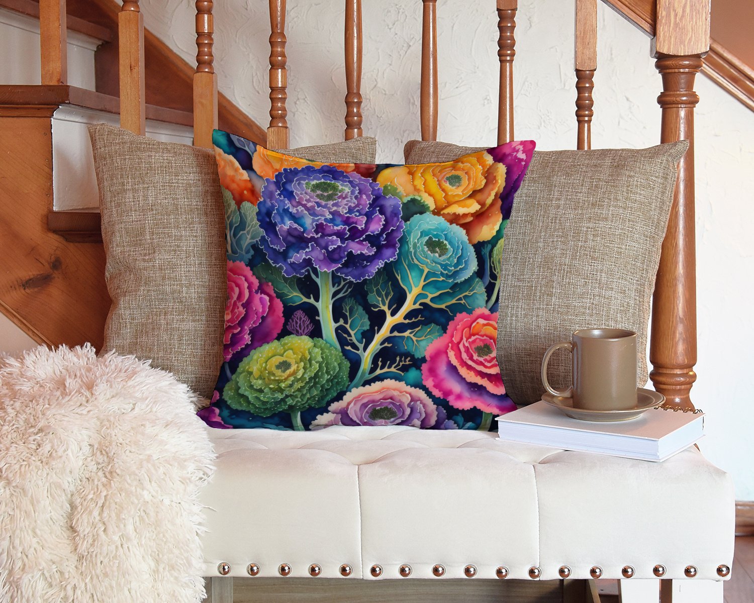 Colorful Ornamental Kale Throw Pillow Machine Washable, Indoor Outdoor Decorative Pillow for Couch, Bed or Patio, 14Hx14W