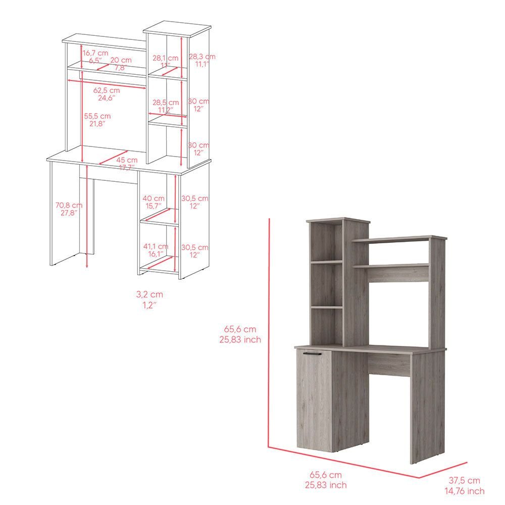 Dive into the world of Dumas – a computer desk that defines elegance and efficiency. Boasting a spacious 25.8"W x 17.7"D working area, Dumas ensures you never feel constrained. The inbuilt hutch is a charm for décor enthusiasts and organization lovers alike. Its blend of open shelves and a discreet door cabinet adds a touch of versatility to your storage game. Available in sophisticated manufactured wood finishes of white, black, and light gray, the Dumas desk elevates every workspace it graces.Dimensions:Height: 64,2" Width: 38,7'Depth: 17,7'Furniture Type: Ready to assemble (full assembly required).Certifications: CARB phase II compliant – TSCA Title VI Compliant.Warranty: 1-year warranty coverage in wooden parts- 1-year warranty coverage in hardware pieces since its manufacturing date found in the lot number printed in the product box.