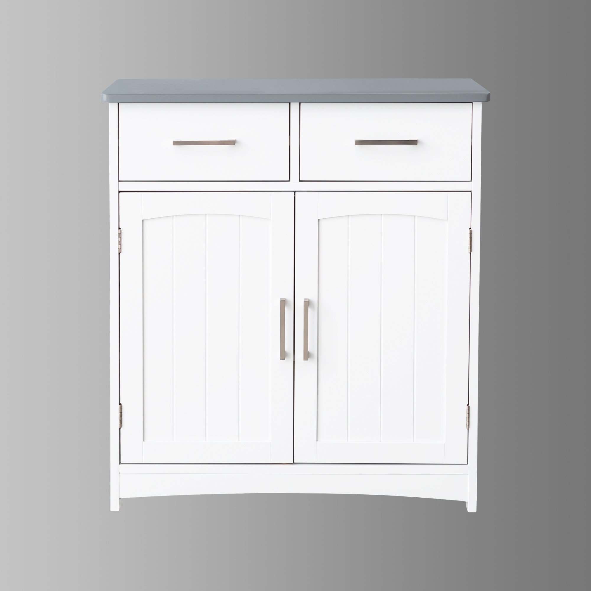 1.Grey Top Plate & Matte White Finish – The buffet cabinet with storage combines a stylish grey top plate with a matte white cabinet, perfect for any space.