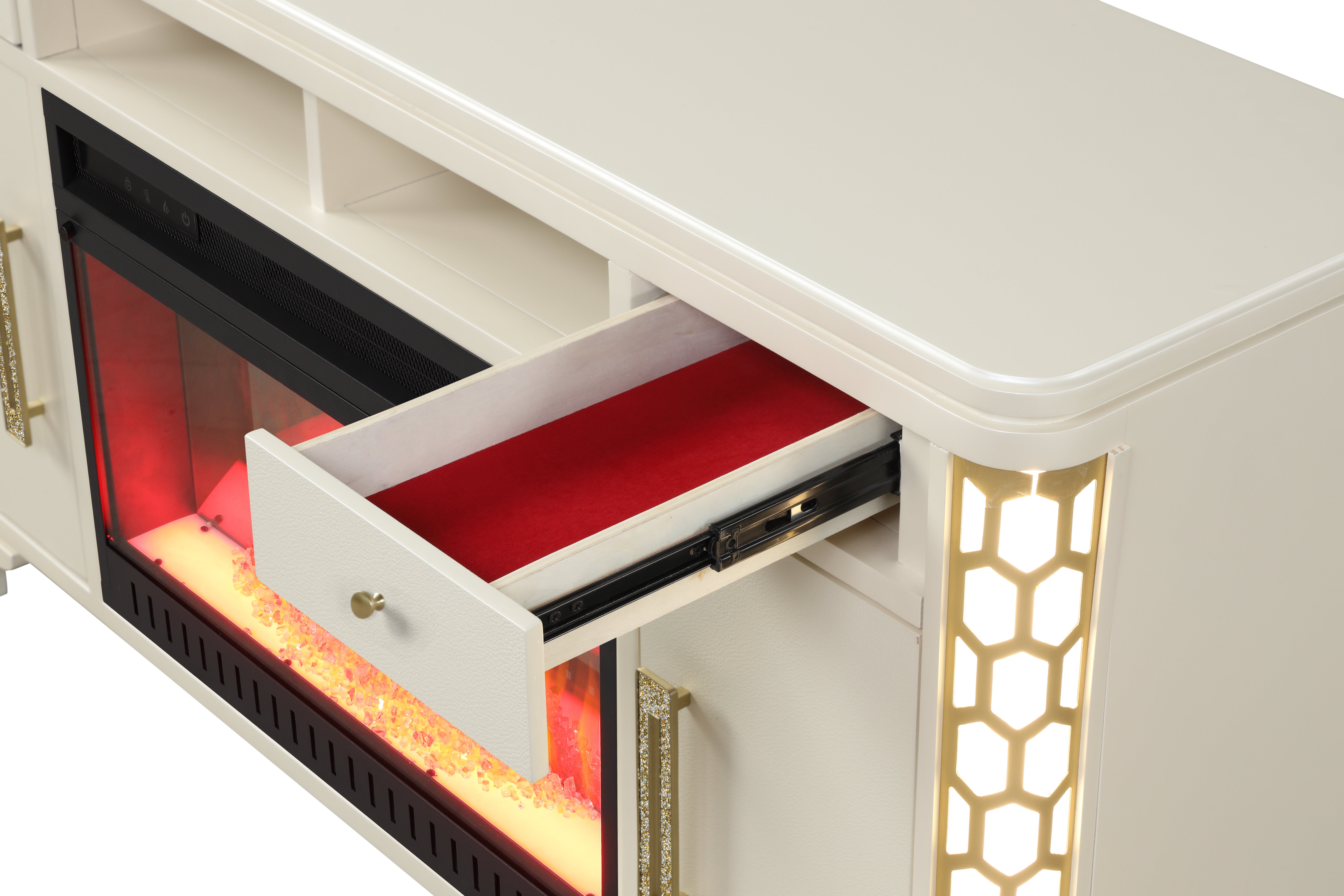 Home > Jasmine TV Stand With Electric Fireplace in Beige