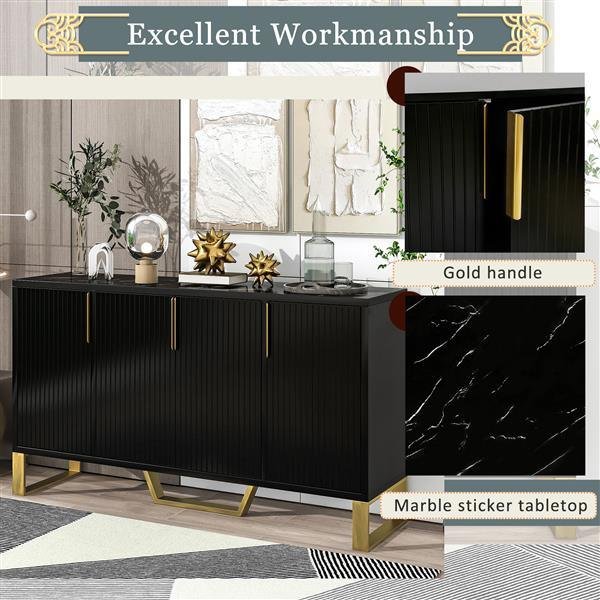 DescriptionCOOLMORE Swivel Chair Living room chairSturdy Base and FrameThe 360-degree rotation barrel chair with a base made of strong metal material and a frame made of solid wood, provides you with strong carrying capacity and high safetyModern Exquisite AppearanceElegant round silhouette and sloping armrest design, it is the perfect addition to any room in your home, adding a sense of style and luxury to your room, whether it is in the living roomWeights & DimensionsUpholstery MaterialPolyesterSeat Fill MaterialFoamWeight Capacity275 lbFrame MaterialSolid +PlyWood+Metal BaseArms IncludedYesLeg ColorBlackRemovable Cushion LocationSeatLeg MaterialMetal BaseCountry of OriginChinaProduct size30.12'' x 28.35'' x 28.35''Seat Depth:22.05"Seat Width22.83"Seat height18.90"Net /Gross weight24/27.5kgsModern Luxury: Sideboard The design of this cabinet combines the features of modern simplicity and light luxury. Straight line, neat and smooth shape, simple lines, no many decorative elements, and pay attention to practicality. Tabletop covered with marble sticker and the pinstripe design on the door panel are elegant and understated, and the gold metal legs reflect the texture, in line with the characteristics of the light luxury style.High-quality Material: The high-quality particle board and MDF used in the construction of this sideboard ensures its sturdiness and stability. The doors, top and bottom panels, and side panels have been spray-painted for a smoother texture, and other panels is covered with paper. The metal legs of this cabinet make the support very stable and have excellent load-bearing capacity. The load-bearing capacity of the top panel is 7 lbs.Excellent Workmanship: This sideboard is consisted of high-end black cabinet body and four doors with gold handles and associated shelves. It is adding a dollop of class and elegance to any storage solution. The cabinet door that linear concave and convex stripe designs enhanced stereo feeling. Its geometric lines provide a beautiful touch to any contemporary decor, and it's excellent for keeping dishes, and other kitchen items in an attractive and useful way.Adjustable Space: The small cabinets on both sides and the large cabinet in the middle provide sufficient storage space. The partitions on these cabinets can be adjusted at three different height positions, and they can be removed as well. In that case, this cabinet can accommodate many items of different size.Assembly & Service: An installation instruction manual is shipped with the product, and clear and logical illustrations in it are easy to understand, users just need to follow it and take about an hour to complete the installation procedure. This instruction manual can ensure users conduct the installation steps without error. Please feel free to contact our customer service if you've got any problems of the item. We will reply you within 24 hours.