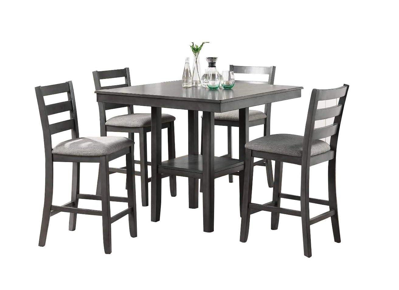 Classic Dining Room Furniture Gray Finish Counter Height 5pc Set Square Dining Table w Shelves Cushion Seat Ladder Back High Chairs Solid wood Classic Dining Room Furniture Gray Finish Counter Height 5pc Set Square Dining Table w Shelves Cushion Seat Ladder Back High Chairs Solid wood Classic Dining Room Furniture Gray Finish Counter Height 5pc Set Square Dining Table w Shelves Cushion Seat Ladder Back High Chairs Solid wood