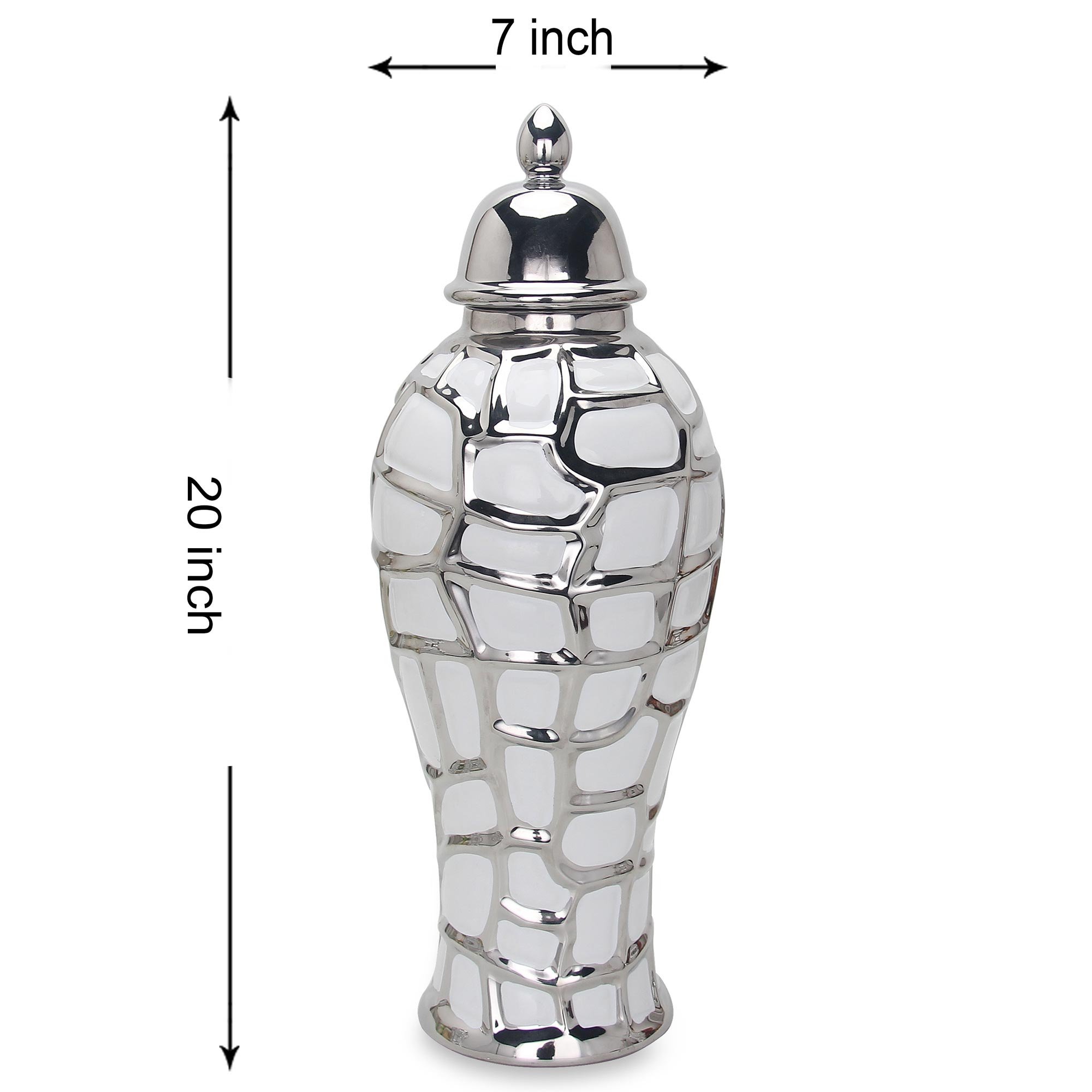 Regal White and Silver Ceramic Decorative Ginger Jar Regal White and Silver Ceramic Decorative Ginger Jar Regal White and Silver Ceramic Decorative Ginger Jar