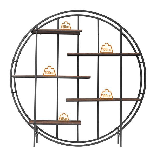 Round 5-Tier Metal Plant Stand bookcase storage rack, Indoor Living Room Terrace Garden Balcony Display Stand. Rustic Brown, 67'' W x 11.8'' D x 67''