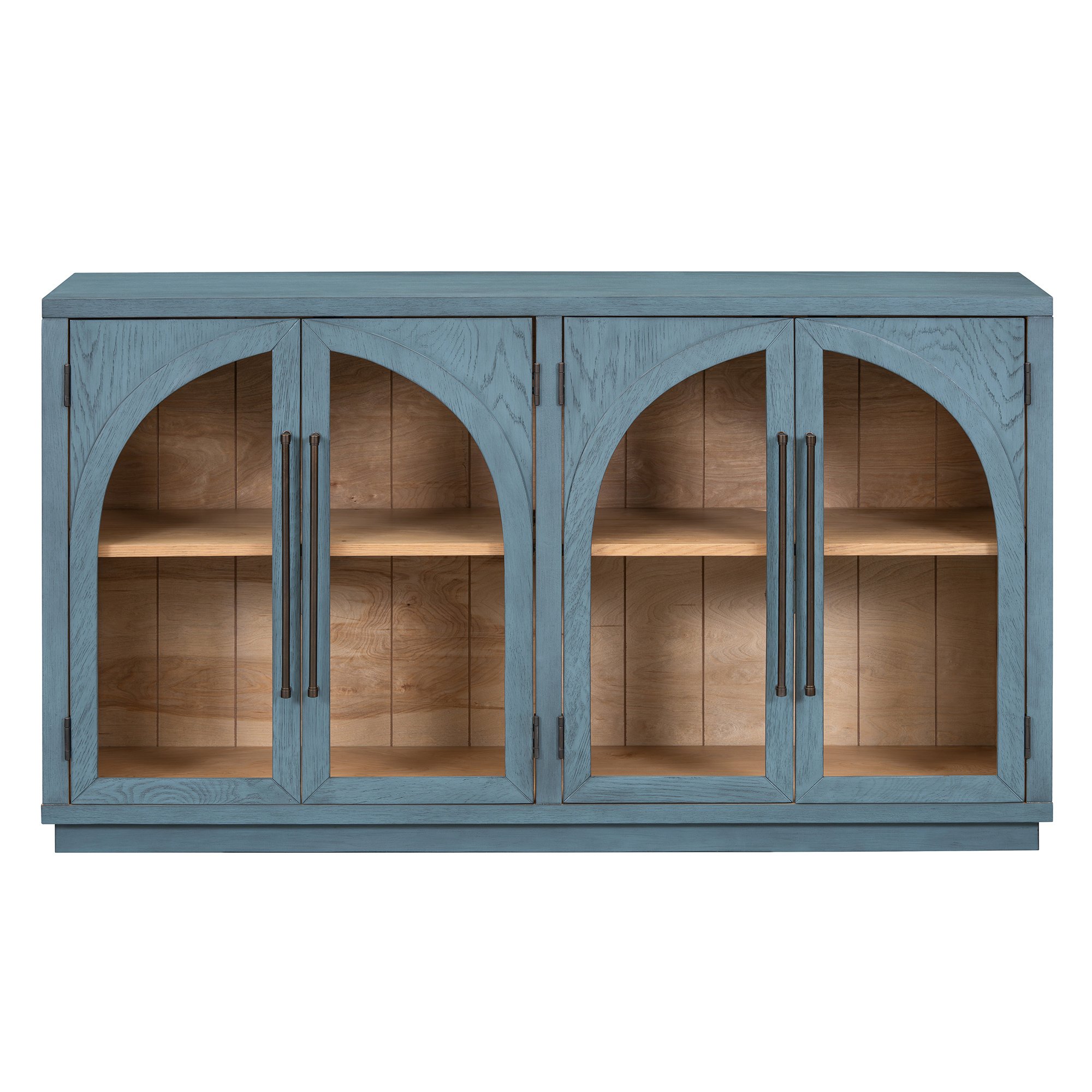 Unique Design: Traditional retro style sideboard, very classic and low-key, makes your furniture look more natural and beautiful. The arched design of four cabinet doors and the superior glass material make this sideboard add uniqueness and personality. Equipped with four convenient and durable metal linear long handles, and clear line in the backboard as opening the cabinet door, this sideboard is more beautiful and practical.