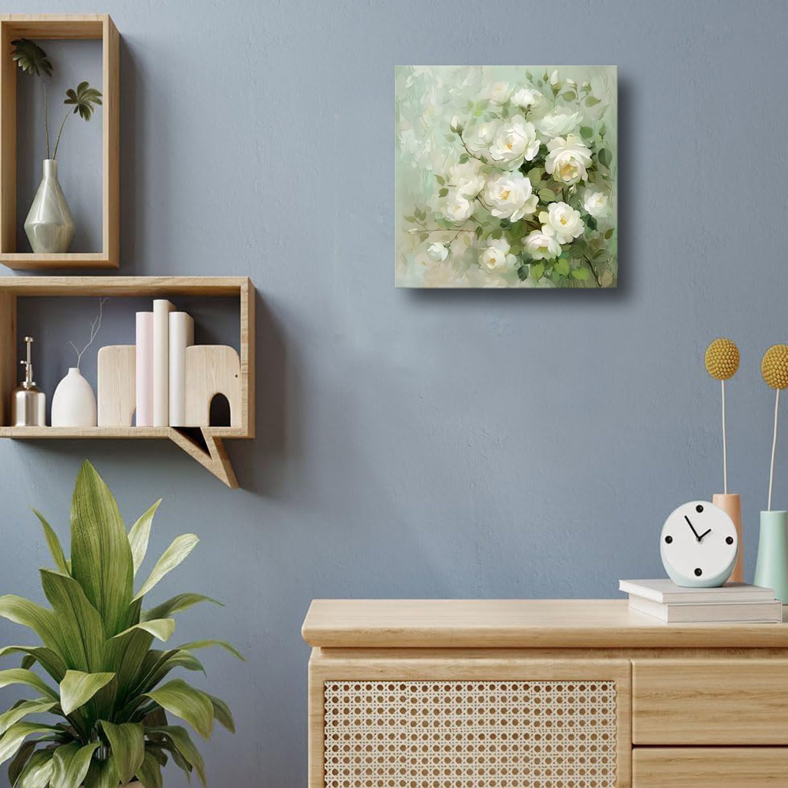 1.Camellia Flower Wall Art for Living Room: White floral green leaf pictures wall decor canvas printing paintings artwork,modern floral wall art prints picture photo printed on canvas.